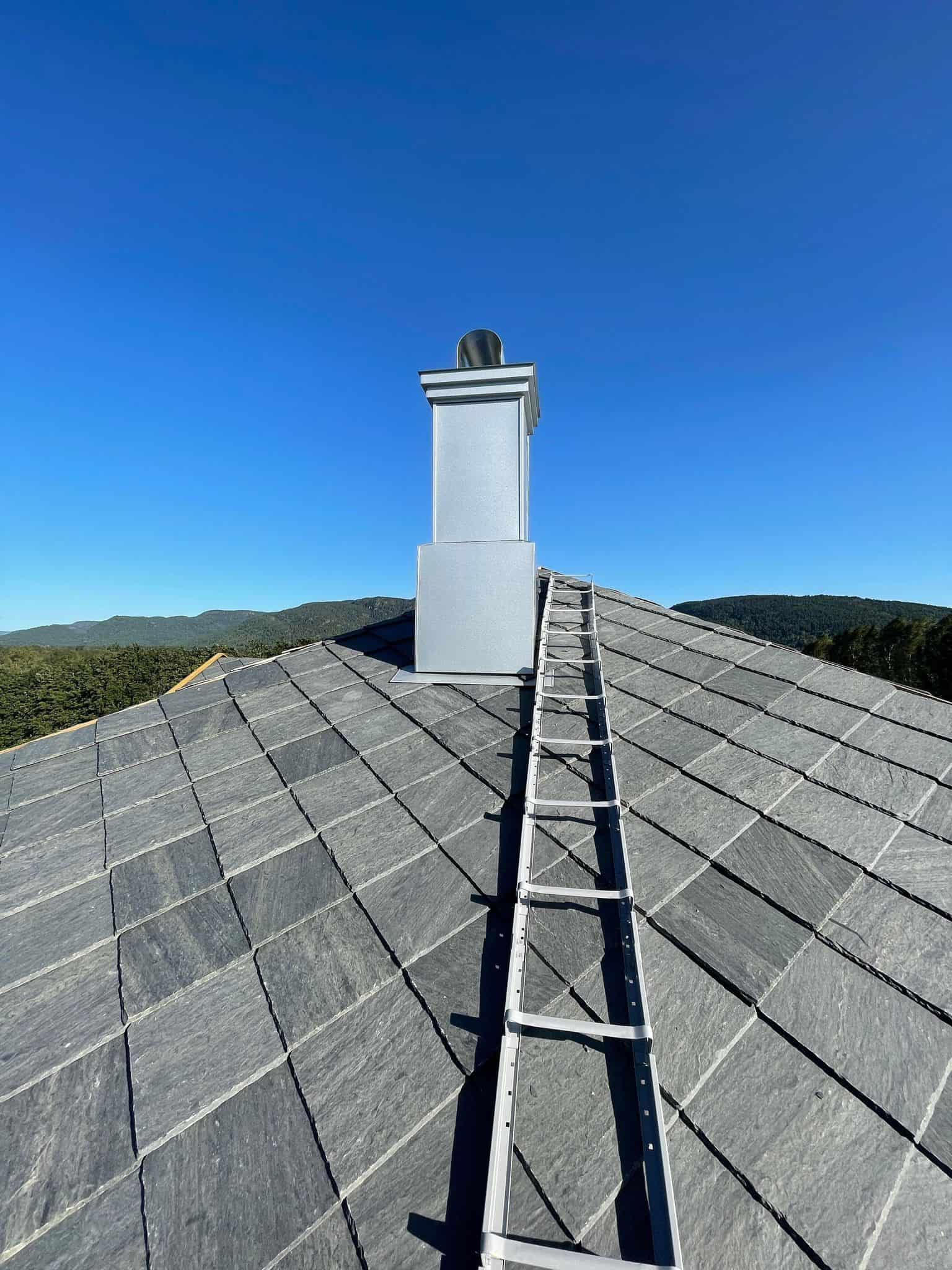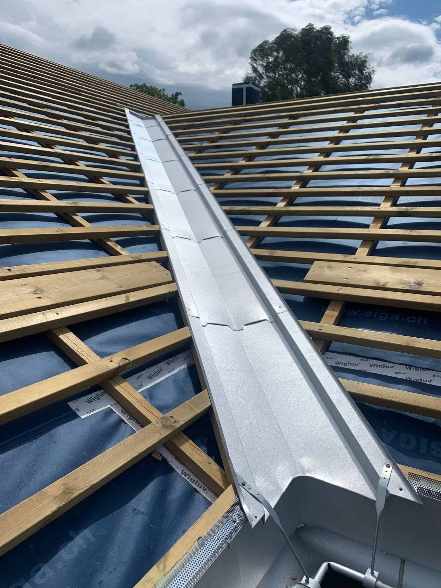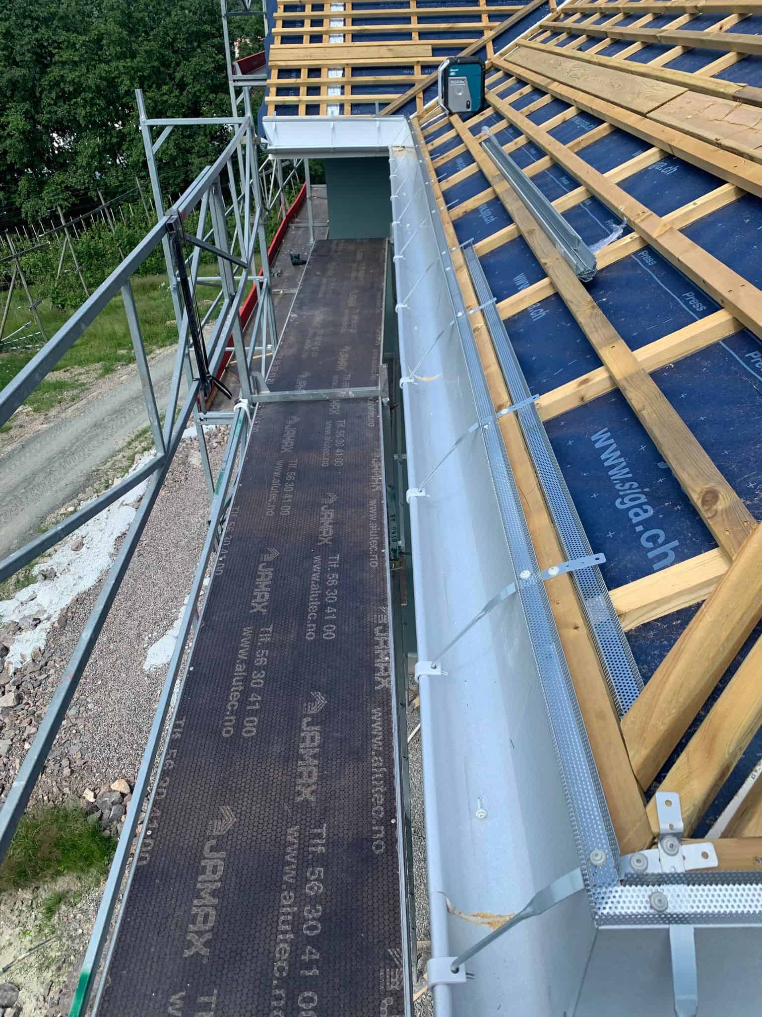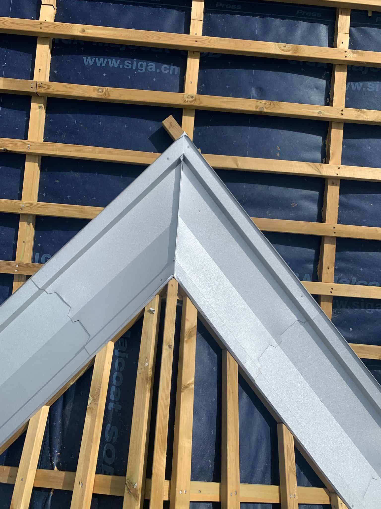 Vi ble engasjert av tømrer for montering av renner og beslag på ett skifertak på en enebolig i Hvittingfoss. Her har vi montert alle beslag og renner i aluzink. Mønebeslag er spesiallaget med «perforering» for å opprettholde lufting igjennom møne.