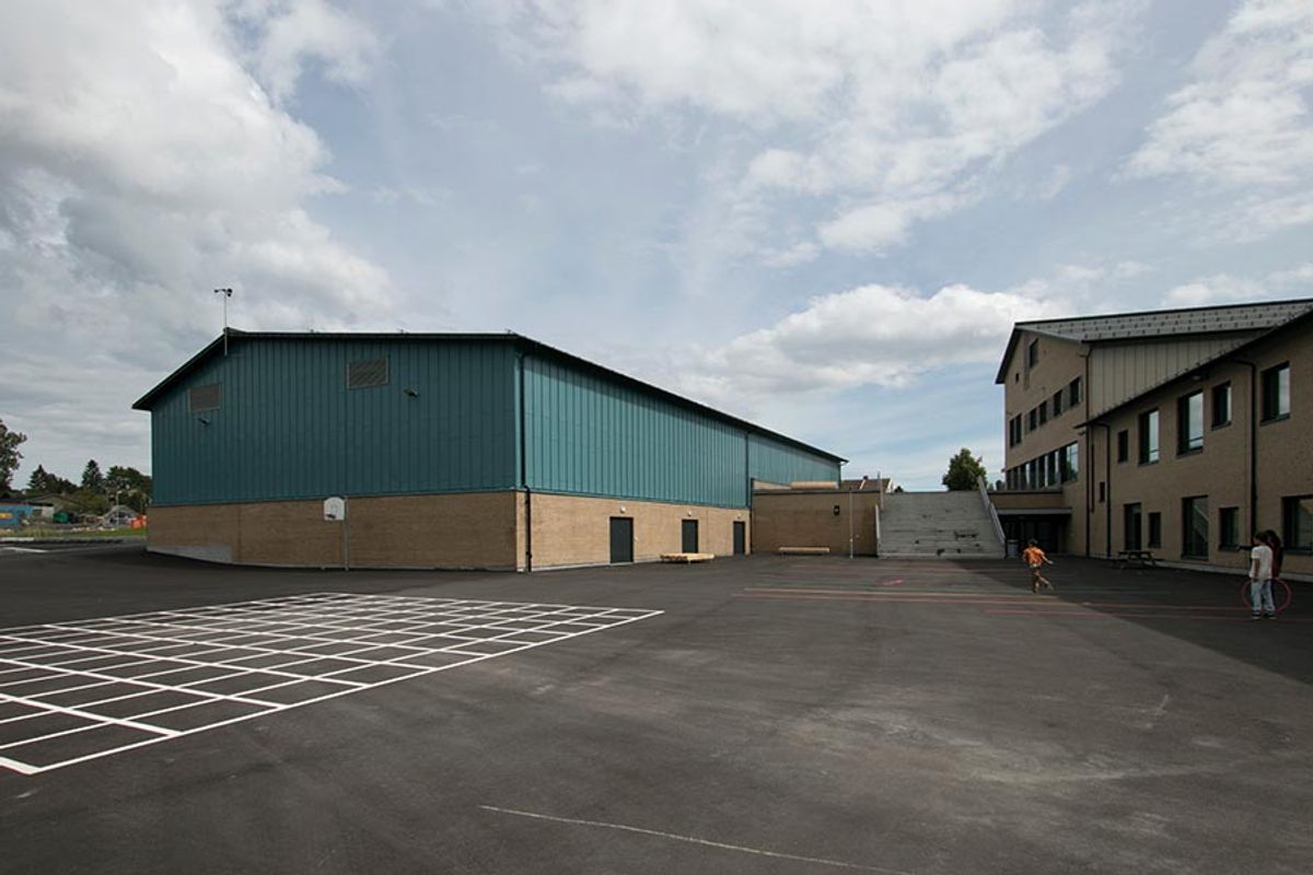 Hent valgte Totaltak for utvendige blikkarbeider på Granly skole da det gamle bygget ble revet og nytt skolebygg med frittliggende flerbrukshall ble oppført. På skolebygget ble det brukt 1mm aluminium på beslag i farge 7016. På flerbrukshallen har vi utført 870kvm skivetekking i farge Wedgewood Blue.
