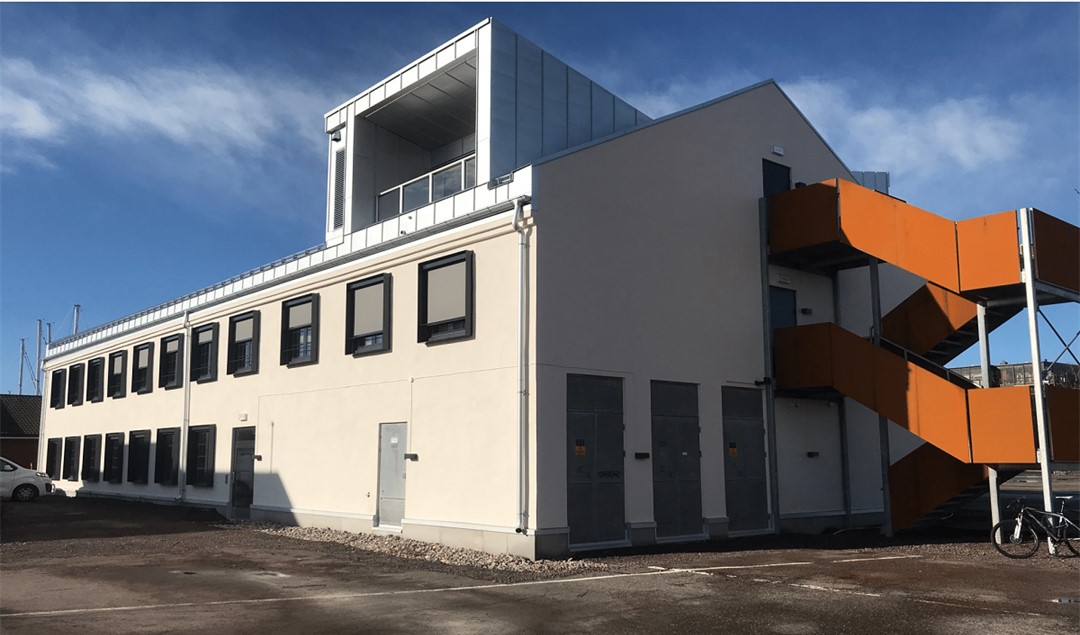 Det er et topp moderne kontorbygg på ca. 6 200 m2 fordelt på to sammenkoplede bygningskropper, med underliggende garasjeanlegg under den ene delen.