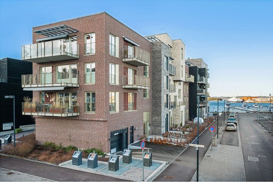 2019 var året for oppstart på blikkarbeider på ny utbyggingen av indrehavneby borettslag. Her har vi levert beslagsarbeider fra sokkel på bakken til gesims på tak. Her er det brukt to forskjellige farger i aluminium for å spille tegl og trefasade best mulig. Farger som er brukt her er RAL 1035 og RAL 7040.